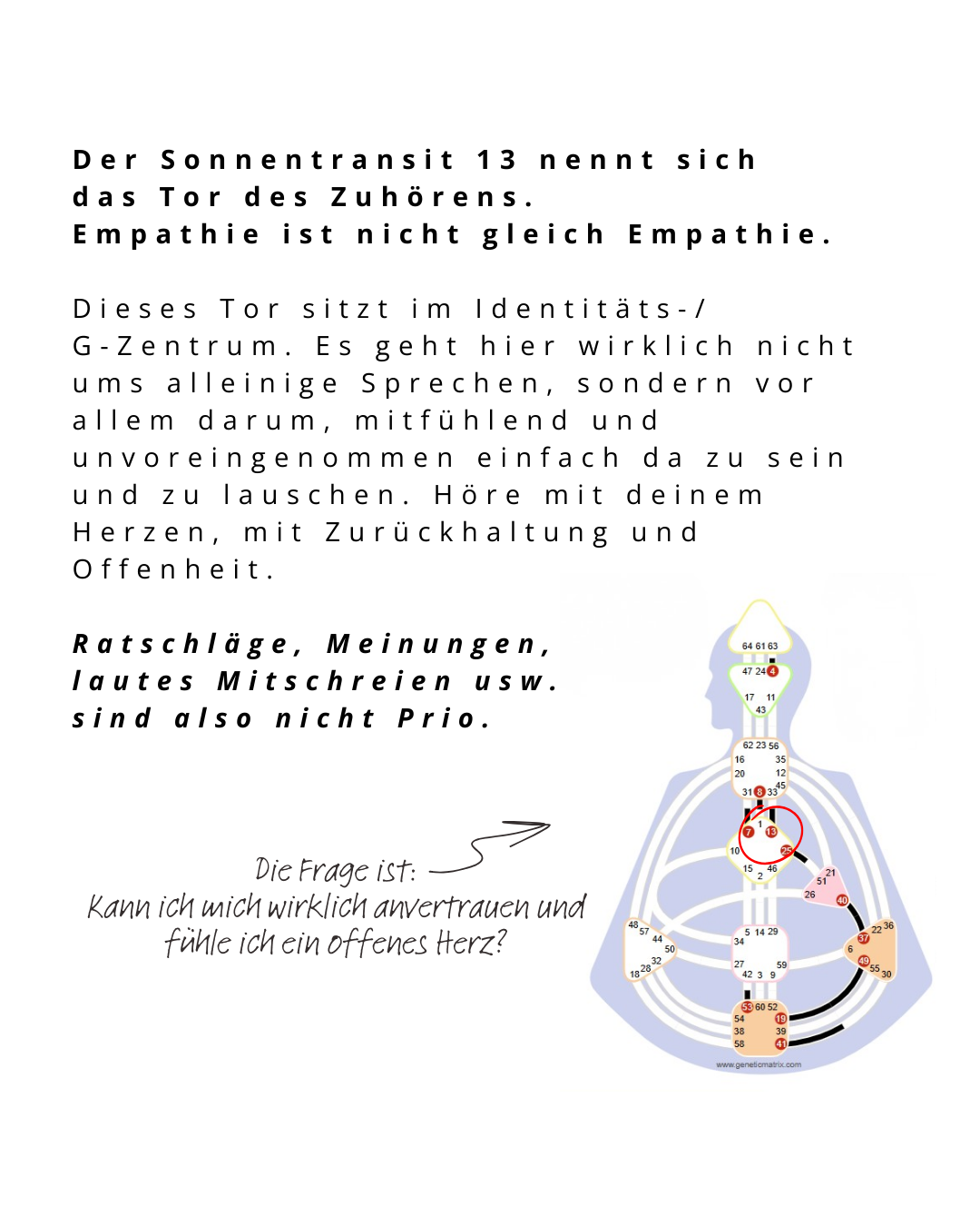Stoppe den Kopf, denn der ist meistens 10 Schritte voraus und legt sich den nächsten Ratschlag oder Worse Case parat, aber er ist leider nicht mehr mit dem Herzen dabei.