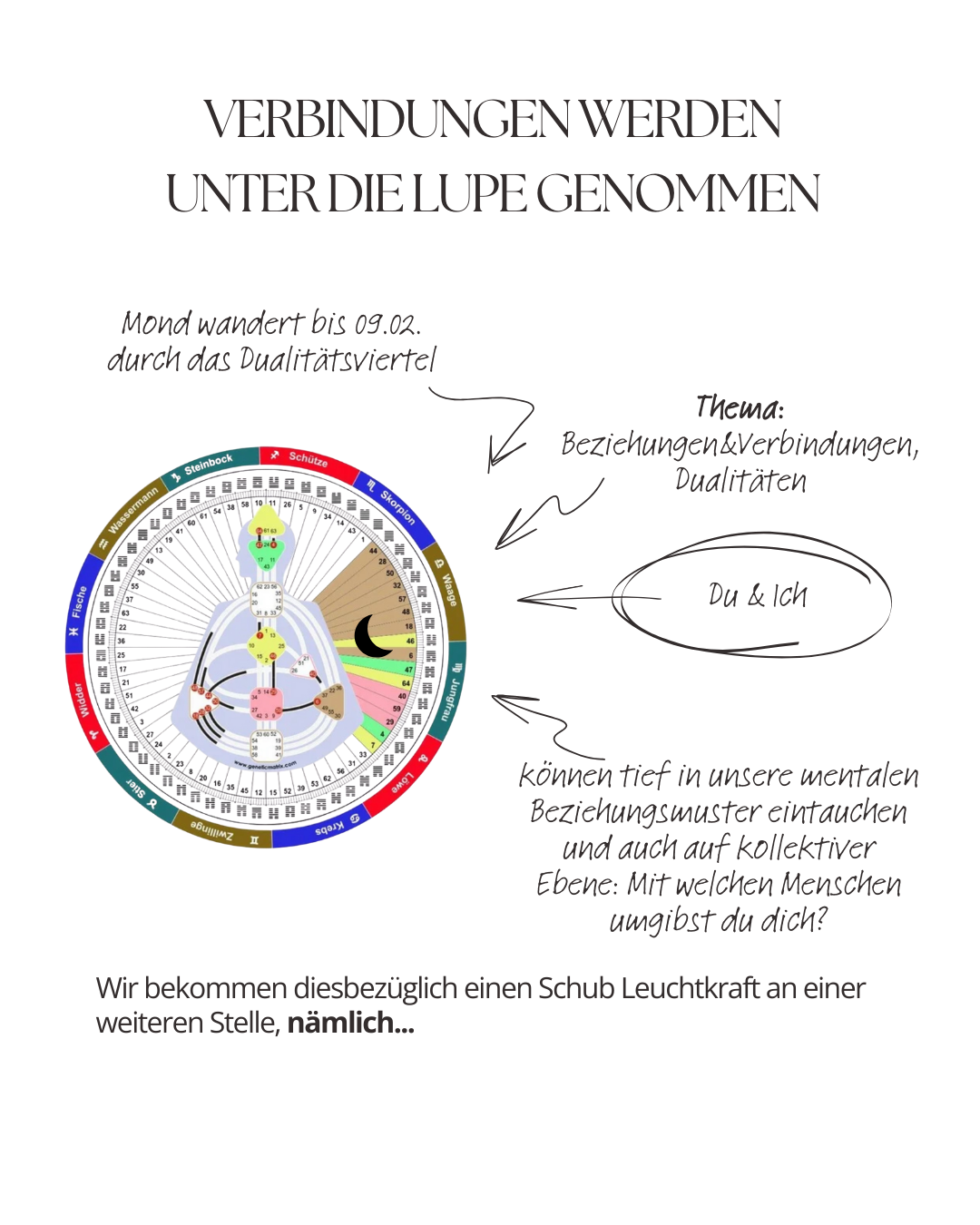 Durch die Tiefe des Mondes innerhalb des Dualitätsviertels vom 2. bis 9. Februar kannst du dein seelisches Empfinden stark spüren, zu wem du dich hingezogen fühlst und zu wem nicht.